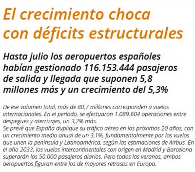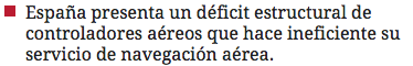 Y ante un panorama de crecimiento versus déficits estructurales (ver cuadro adjunto), la Unión Sindical de Controladores Aéreos (USCA) resalta la necesidad de contratación de nuevos controladores ya no tanto para atender el previsible aumento del tráfico aéreo, como para cubrir el déficit de personal desde hace unos años. El vicepresidente de la Asociación Profesional de Controladores de Tránsito Aéreo (APROCTA), Jaume Assens, recuerda por su parte que se trata de un déficit estructural de España y que se agravará con el envejecimiento natural de los actuales integrantes de la plantilla de Enaire, tras las jubilaciones que se producirán en los próximos 10 años.