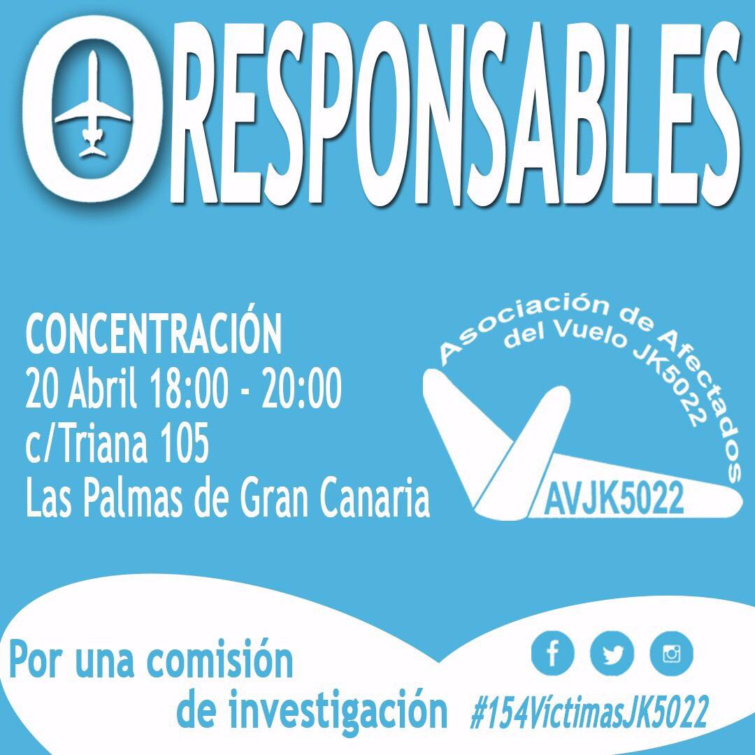 La Asociación de Víctimas del Spanair 5022 convoca a una concentración ciudadana mañana día 20 de abril en Las Palmas de Gran Canaria, a las 20:00, para pedir la creación de una Comisión de investigación sobre el accidente. Casi una década después, aún no hay responsables.