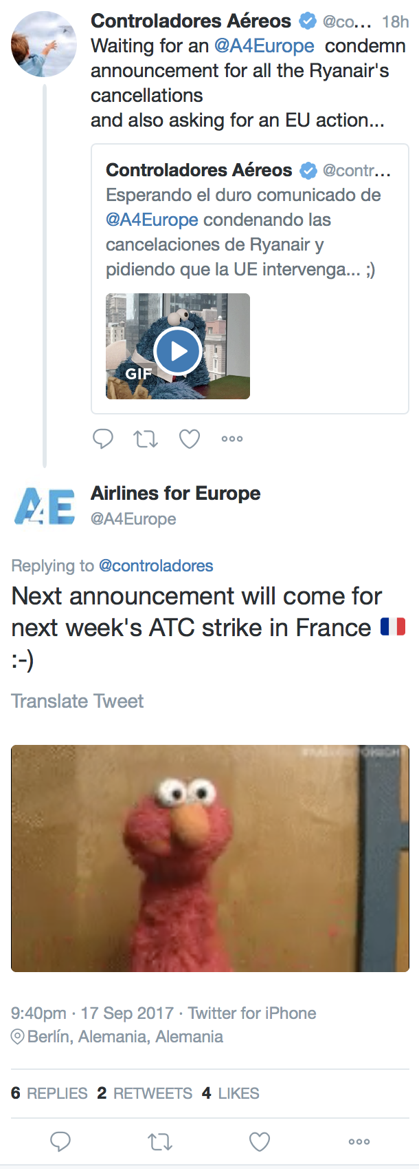 Lo único que hemos sabido de ellos es por este intercambio de mensajes en Twitter, en el que demuestran un nulo interés por la suerte de los cientos de miles de pasajeros y sus vacaciones o viajes de trabajo:
